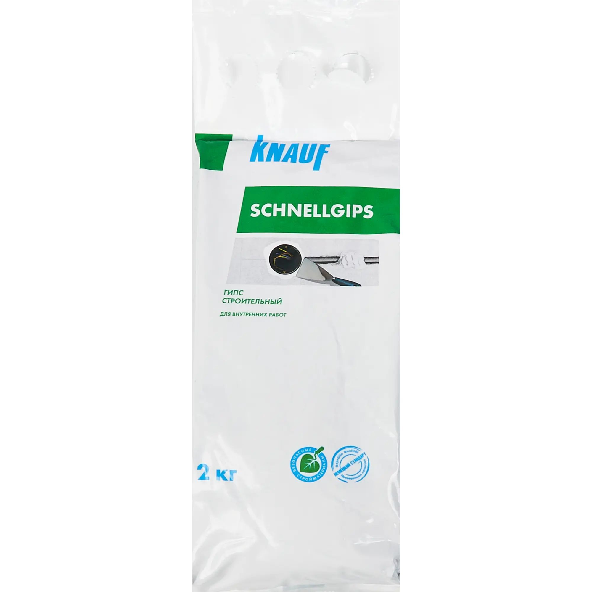 Алебастр Knauf Шнельгипс — сухая строительная смесь на основе гипса. Используется в ремонтных и отделочных работах, для декоративного оформления интерьеров. Это порошкообразное вещество белого цвета, которое необходимо развести водой до нужной консистенции. Разводить необходимо небольшими порциями, поскольку уже через 5 минут после контакта с водой смесь схватывается, а полностью застывает в течение получаса.