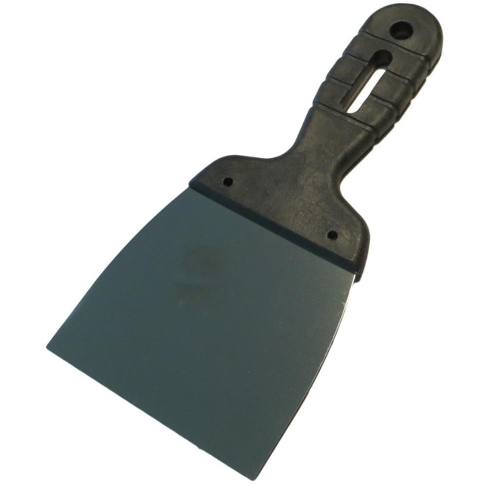 Шпатель — ручной инструмент, оптимизирующий процесс нанесения и выравнивания раствора или шпатлевки на небольших поверхностях. Полотно шпателя, изготовленное из легированной стали, характеризуется жесткостью и прочностью. Инструмент оснащен облегченной ручкой из ударопрочной пластмассы. Широко используется в строительстве, в штукатурно-малярных работах.