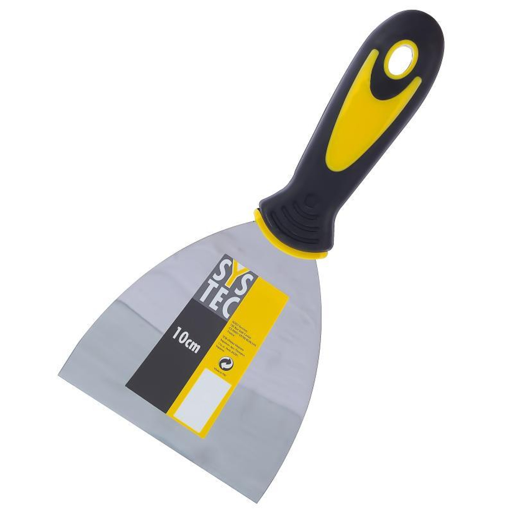 Шпатель Systec — инструмент с небольшой шириной лезвия (100 мм). Предназначен для работы с плиточными швами, нанесения шпатлевки на сдир и демонтажа старых покрытий. Подходит для внутренних и наружных работ. Полотно изготовлено из нержавеющей стали, гибкое и упругое. Размер инструмента оптимален для проработки небольших поверхностей и сложных участков. Размеры в упаковке: 10x3x21 см.