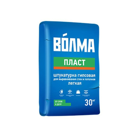 ВОЛМА-Пласт - сухая штукатурная смесь на основе гипсового вяжущего и заполнителя с применением минеральных и химических добавок, обеспечивающих высокую адгезию, водоудерживающую способность и оптимальное время работы.